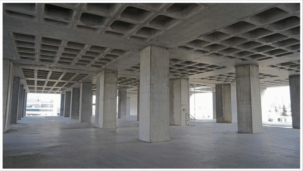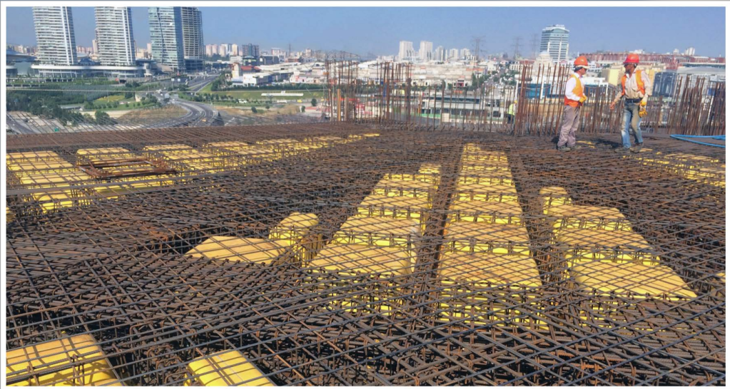 60 cm slab thickness in the cassette formwork system. Thanks to these attributes, The building has a high load carrying capacity. Load carrying capacity per m2 is 2.5 tons.