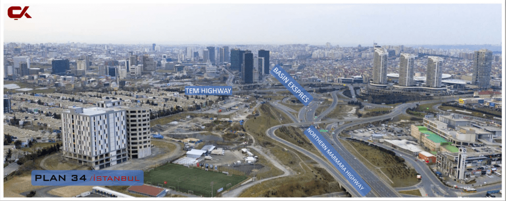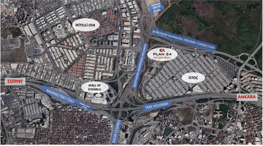 İkitelli OSB at the junction of the Northern Marmara Highway, TEM and Basın Ekspres main roads. The