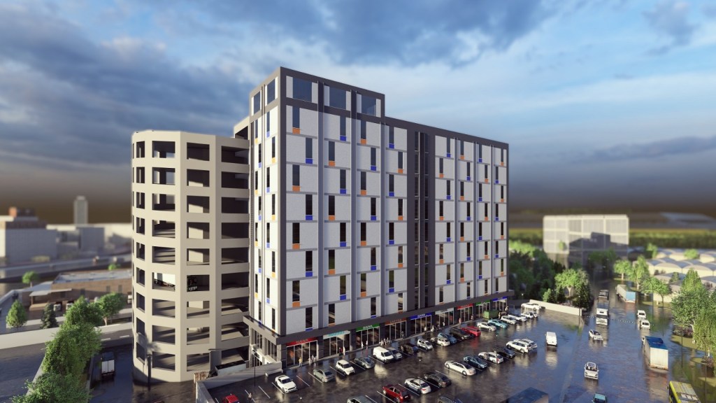 project consists of 12 floors, and with the truck ramp in the building, truck transportation is possible to